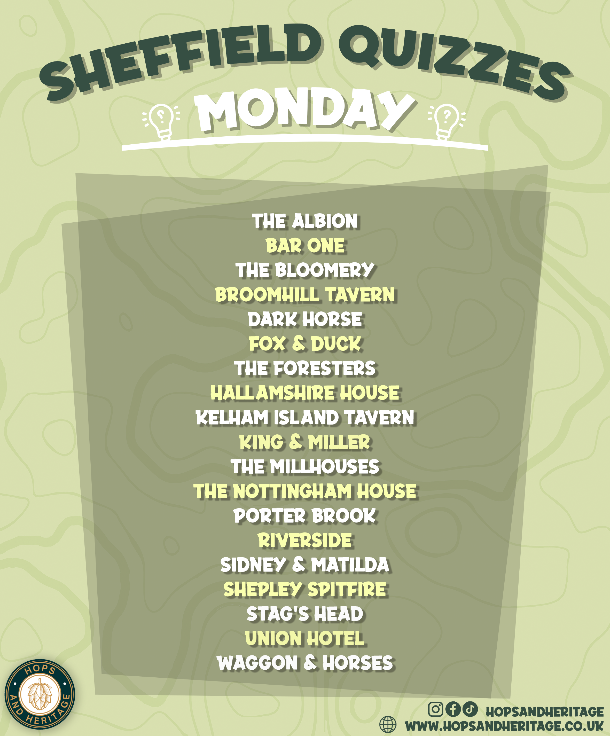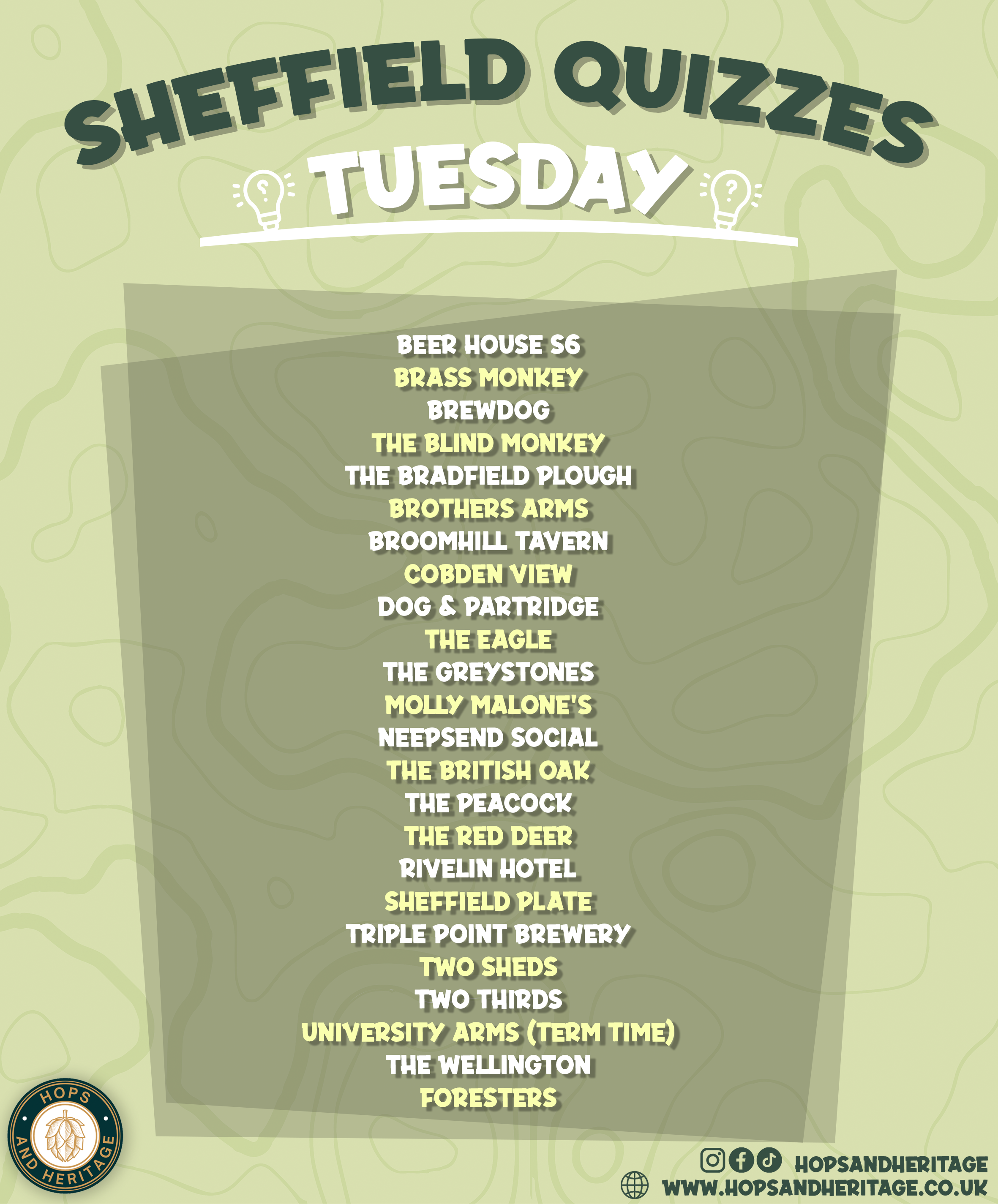 Test your knowledge any night of the week in Sheffield! This page showcases a fantastic array of pub quizzes happening across the city on different days.